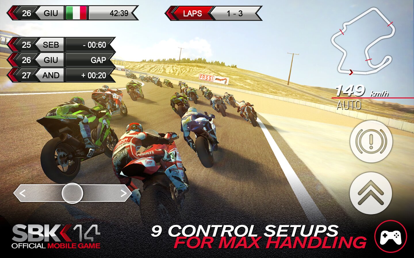 SBK14 — это игра о профессиональных мото-гонках. Новинка порадует вас прекрасной графикой, прекрасно воссозданными реальными трассами и треками, большим парком мотоциклов разных производителей в спортивных вариациях, например BMW и Ducati. Особенно стоит отметить систему освещения, которая сделана на уровне «больших» игр для ПК или приставок.