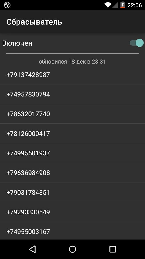 После активации «черный» список номеров обновляется из интернета.