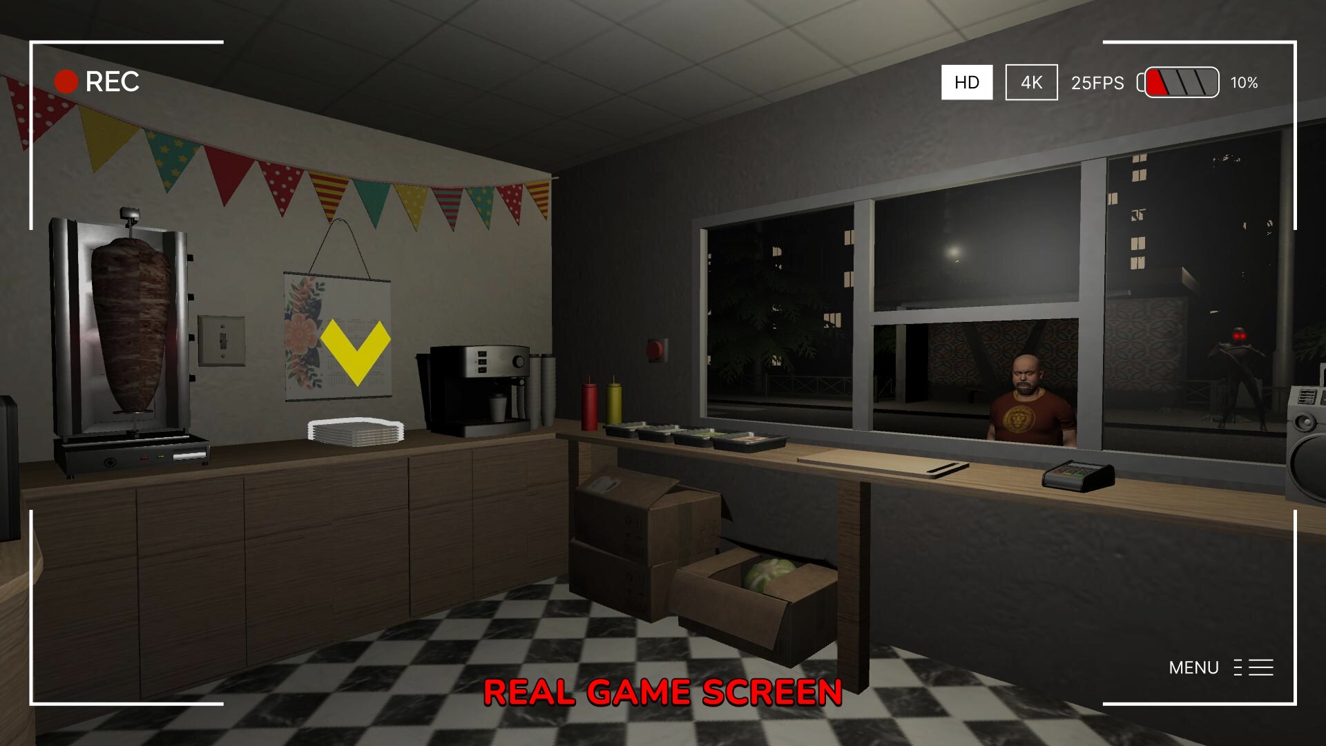 Исследуй сюрреалистичный лабиринт из мясорубок, проклятых морозилок и кричащих приправ. Убегай от мутировавших клиентов, уклоняйся от одержимых кухонных инструментов и раскрой тёмную тайну происхождения киоска. Каждый уровень — новый кошмар: от шипящих мясных ловушек до скримеров, спрятанных на полке с специями.