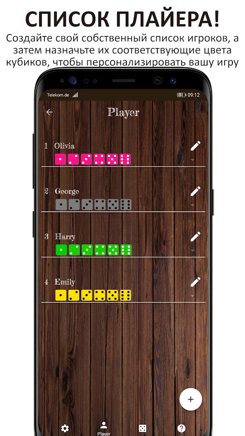 - ПЛАЙЕР ЛИСТ! Создай свой собственный список игроков и назначь каждому игроку различные кости для персонализации игры.