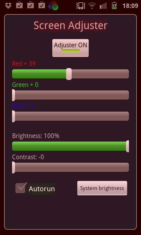 (Позволяет, уменьшить яркость экрана ниже минимального значения, установленного системой).Это необходимо, например, для снижения нагрузки на глаза, во время ночного чтения.