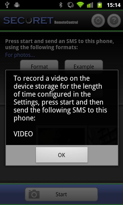 SECuRET RemoteControl — приложение, с помощью которого вы сможете удаленно управлять камерой смартфона. Выполняется это посредством специальных sms-сообщений. Вы отправляете на смартфон, на котором запущена эта программа, специальную sms, которая позволит начать видеозапись с камеры, сохранить фотоснимок или отправить его на заданный адрес e-mail.