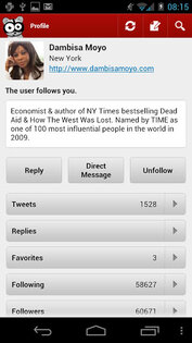 Но есть один весьма существенный недостаток: Seesmic жрёт траффик за обе щёки. При отсутствии новых твитов на обновление ленты он расходует 80-100 Кб (по всей видимости, повторно загружает уже загруженные ранее твиты – данный объем траффика указан для минимальной длины ленты в 20 сообщений). Twidroid Pro на аналогичную операцию тратит всего 2-3 Кб.