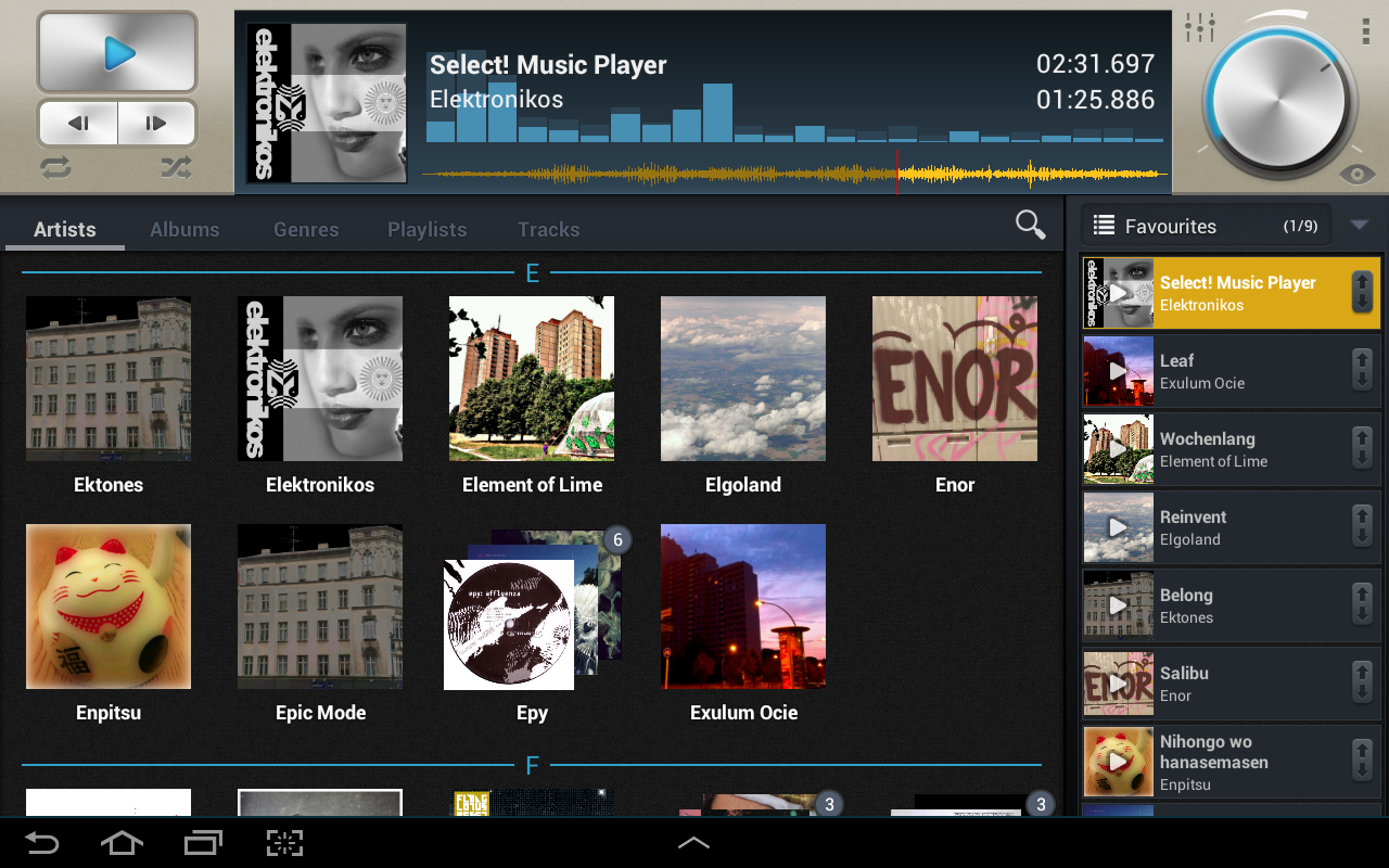 - Просмотр музыкальной коллекции по альбомам, исполнителям, жанрам, плейлистам и трекам;