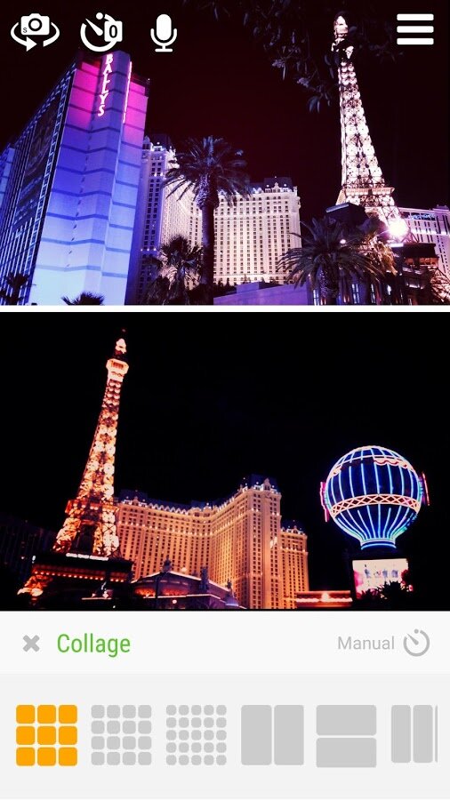 Коллажи. Программа умеет снимать несколько снимков, накладывать на них эффекты и склеивать все полученные фото в одно. Серию снимков можно делать как в ручном, так и в автоматическом режиме. Выберите коллаж, интервал и нажмите кнопку съемки, дальше программа сделает все сама!