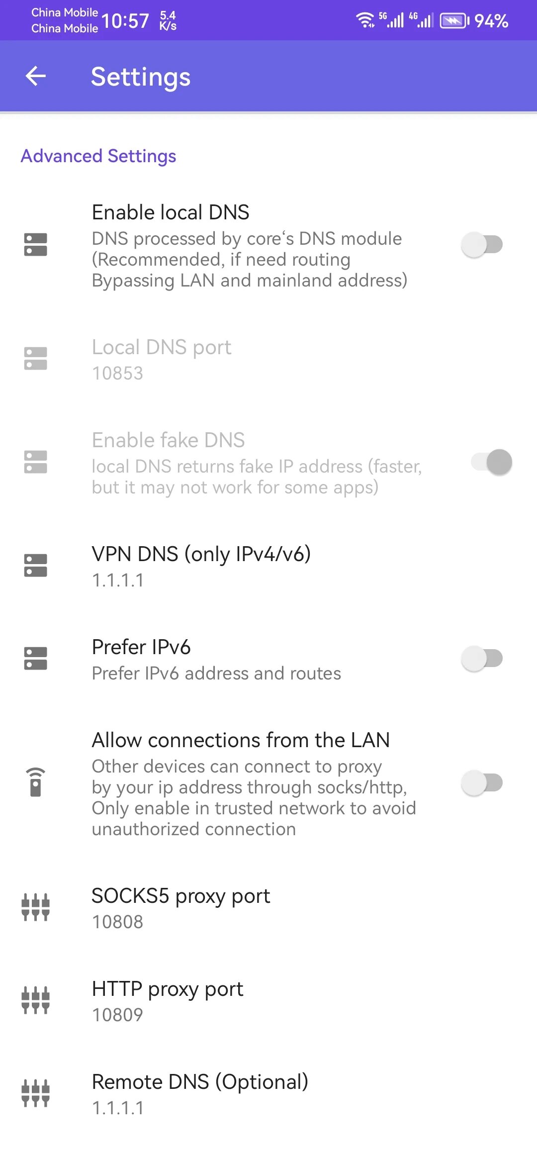 - Пользовательские маршруты и настройки прокси для отдельных приложений