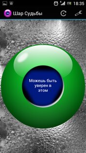 В данной, Android версии шара предсказаний, чтобы получить ответ на интересующий вопрос, необходимо встряхнуть телефон или нажать на пункт меню. Через мгновение шар заработает и на его поверхности появиться ответ на сформулированный вами вопрос.
