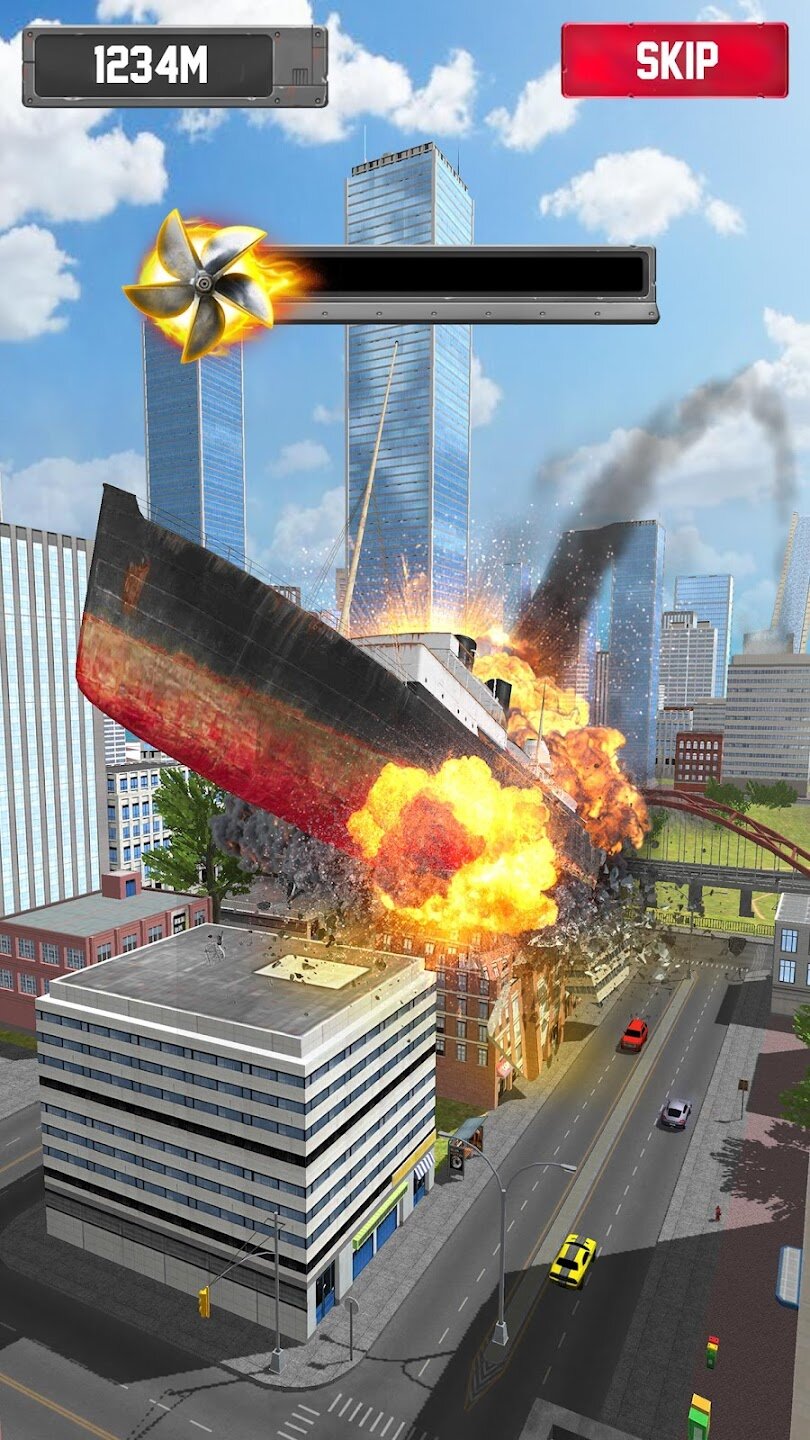 Каждый корабль обладает уникальными характеристиками управления и физикой полета. Вам предстоит освоить десятки плавсредств — от скоростных катеров до массивных авианосцев. Пытайтесь удержаться в воздухе как можно дольше, выполняйте смертельные вращения и наблюдайте за эпичными последствиями столкновений с городскими объектами.