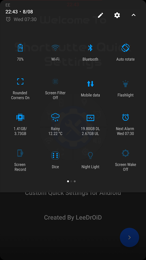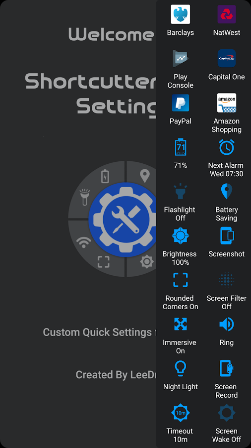 Shortcutter Quick Settings — утилита для редактирования иконок в панели быстрых настроек. Зачастую шторка уведомлений оснащена самыми необходимыми иконками — Wi-Fi, Bluetooth, мобильная передача данных, блокировка ориентации экрана и прочими. Однако их не всегда хватает. Приложение Shortcutter Quick Settings позволит настроить панель быстрых иконок так, как вам удобно — утилита может редактировать до 70 ярлыков. Эта функция работает только на Android 7.0 и новее. Владельцы смартфонов на базе Android 6.0 Marshmallow смогут добавить кастомную панель быстрых настроек и уже на ней разместить все поддерживаемые ярлыки системных переключателей.