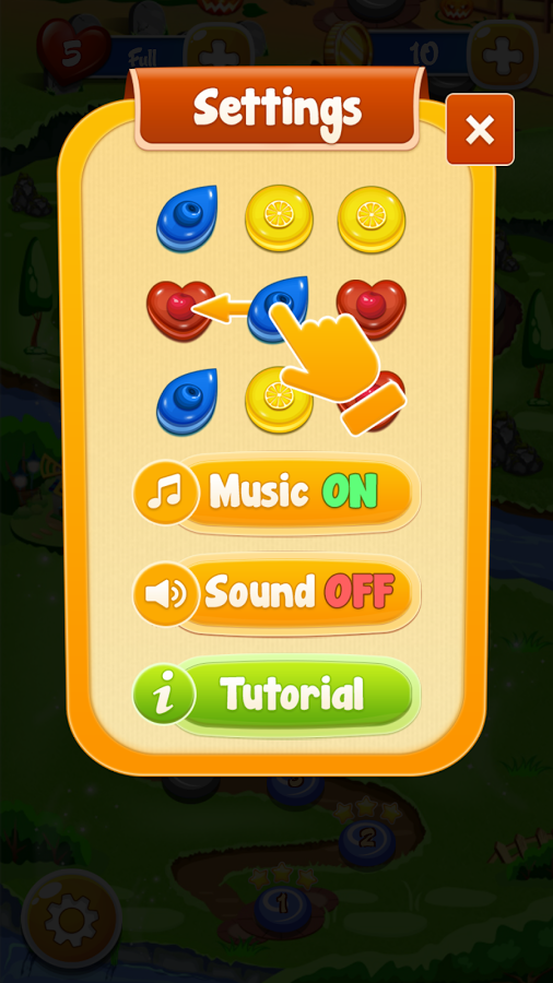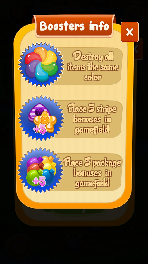Использование комбинации из трех или более одинаковых конфет, что бы очистить игровое поле. Раздел используется в игре красочная графика и уникальный геймплей помогут провести время с удовольствием.