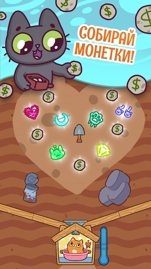 Во время раскопок вы можете обнаружить закопанные сокровища. Соединяй их вместе, чтобы получить воду для прохождения уровня. За собранные монетки вы сможете покупать новые сокровища, которые помогут вам преодолеть трудности на пути к дому.
