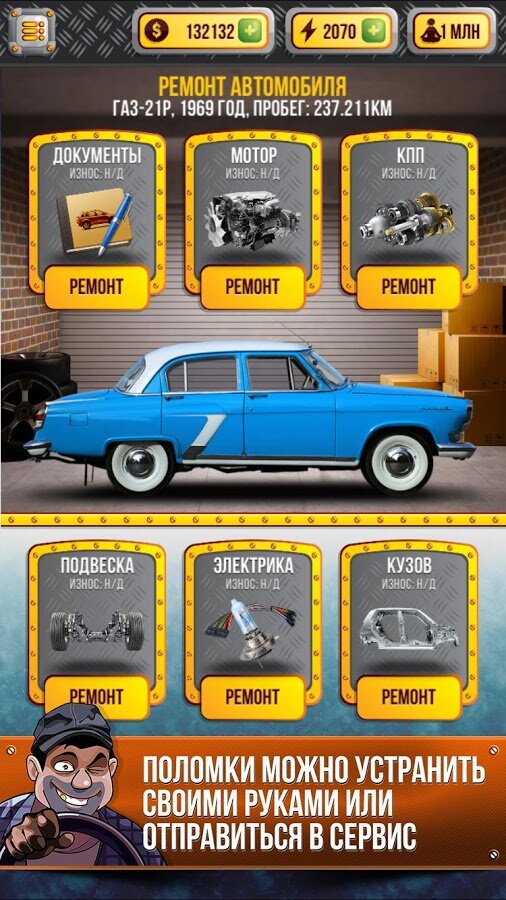 По мере прохождения игры, вы начинаете набираться опыта, ваш бизнес активно растет. Вы можете позволить себе покупать более дорогие автомобили. Вы учитесь диагностировать поломки и оперативно и дешево их устранять.