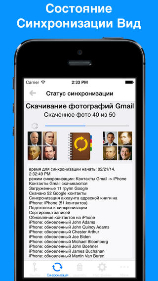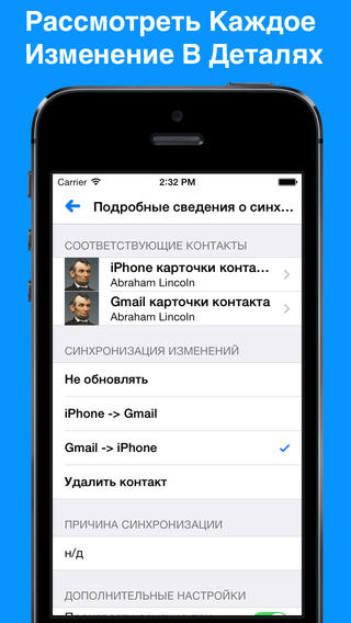 “Синхронизация Контактов Gmail” позволяет быстро и легко синхронизировать адресную книгу Gmail и вашего iPhone, так что у вас будет доступ к вашей базе контактов куда бы вы ни отправились. Это приложение выгодно отличается от конкурентов своей надежностью, легкостью в использовании, скоростью и самой настоящий “двухсторонней синхронизацией”, которая позволяет свести воедино изменения в данных в Gmail и на вашем iPhone. Перед вами приложение номер #1 для синхронизации Gmail контактов с iPhone/iPad/iPod по числу продаж и пользовательскому рейтингу.