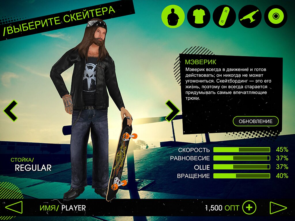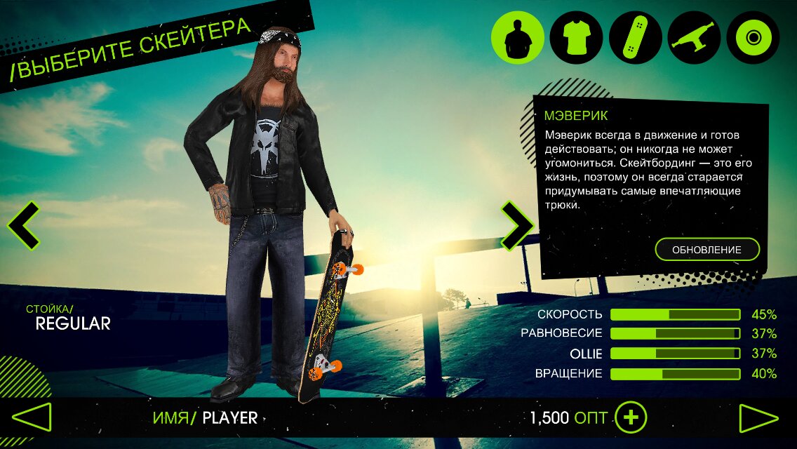 - Играйте чаще, чтобы накопить опыт и усовершенствовать своего скейтера.