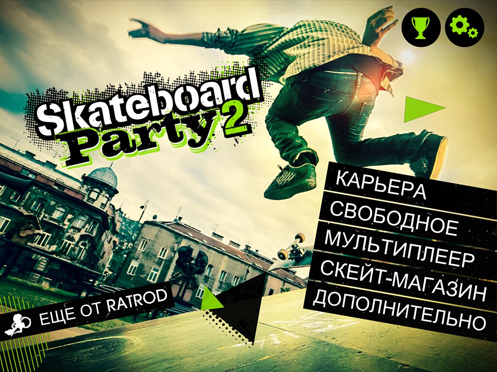Skateboard Party 2 — запустив на своем мобильном устройстве, вы сможете веселиться, катаясь на скейтборде в 8 совершенно уникальных местах. Запрыгивайте на доску, изучайте новые движения, улучшайте свои навыки катания на скейте, чтобы, приземляясь, выполнять клевые combo.