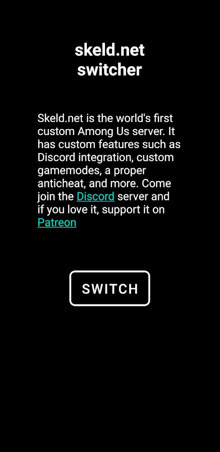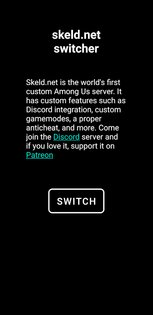 Skeld.net Among Us Mods — первое в мире приложение для подключения к приватным серверам в Among Us. Одним нажатием кнопки вы можете переключаться индивидуальный сервер.
