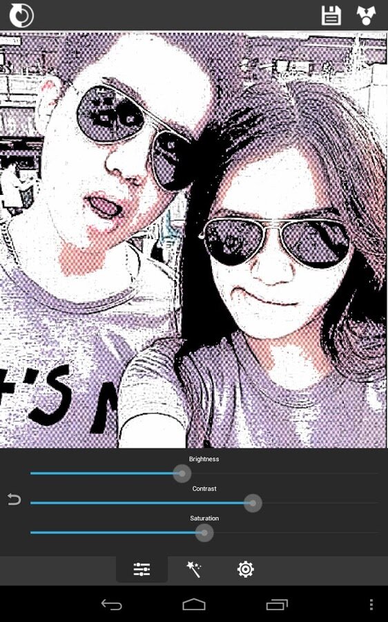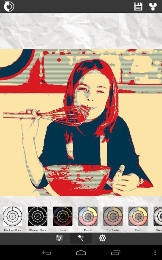 - Различные эффекты (черные штрихи, белые штрихи, пастель, карандашный рисунок, цветной рисунок, мультфильм, штамп, полутона, штриховка).