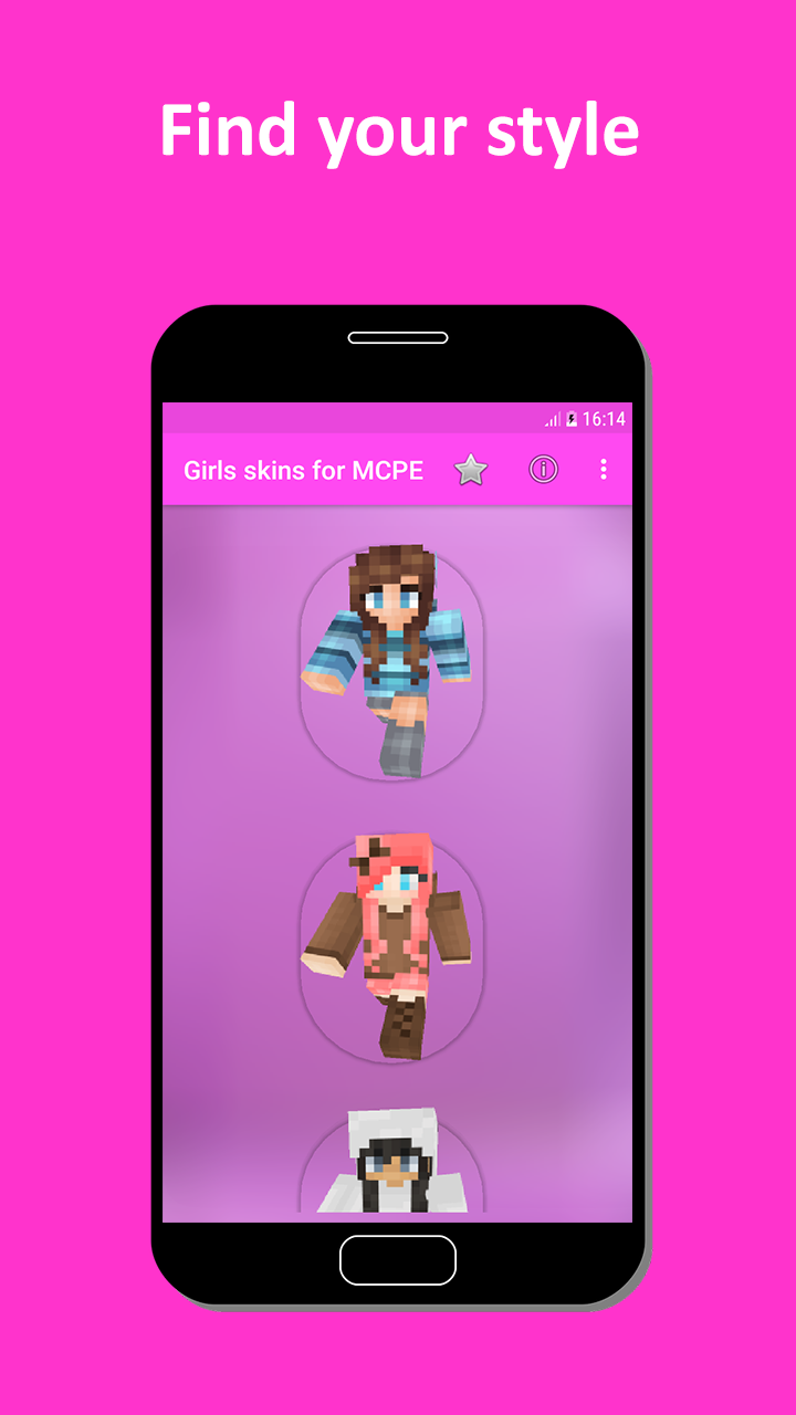 Скины девушек приложение позволит вам выбирать и применять скин к персонажу Minecraft бесплатно одним нажатием кнопки!