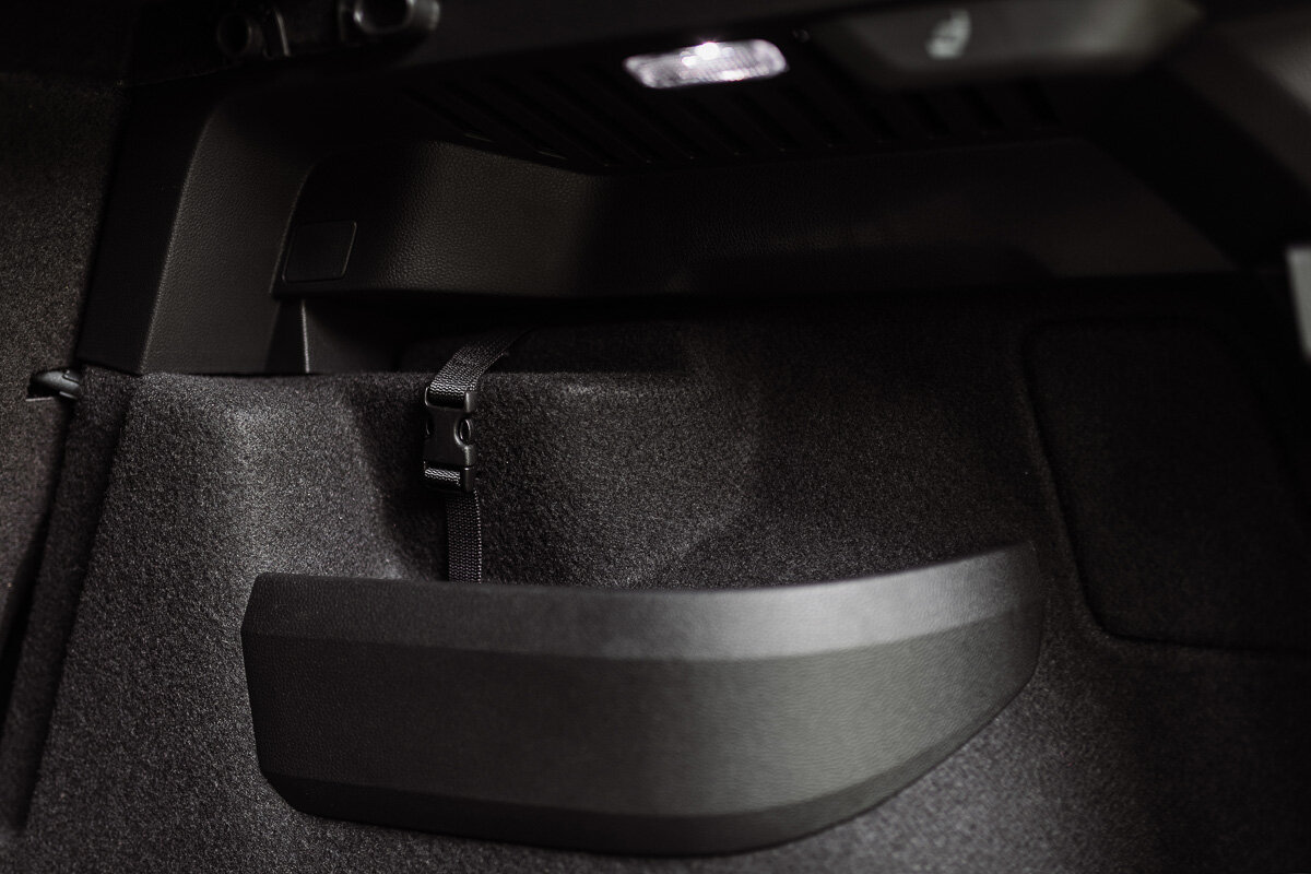 В целом багажное отделение порадовало логичностью, простором и удобством доступа. Поругаю только за достаточно тусклый и единственный источник света. Есть ещё один нюанс, задний ряд складываются не вровень с полом. Такая возможность есть только у версии 4х4. Объём при сложенном заднем ряде составит 1604 литра.