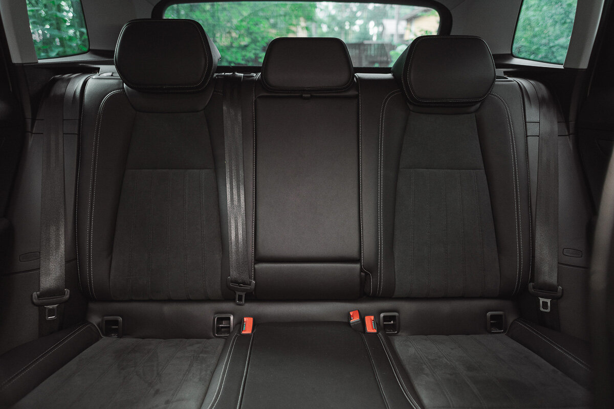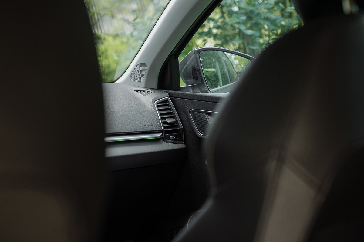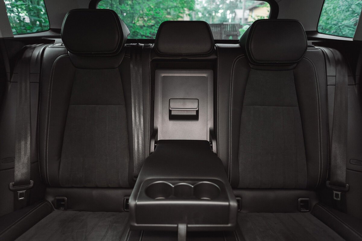 Спереди всё вообще отлично. Сидения с механической регулировкой, в том числе поясницы. Если у вас один водитель, не вижу смысла переплачивать за электропривод, один раз подстроить под себя совсем несложно. Кресла действительно удобные и мне понравилось сочетание материалов, в моей комплектации приятное сочетание кожи с замшей, оба искусственные. Да и на полностью кожаных креслах жарко сидеть, особенно летом.