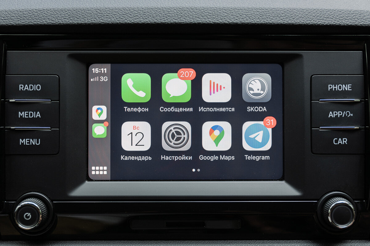 Вернусь к теме бортового компьютера. Повторюсь, что в данной комплектации, на мой взгляд, оптимальное сочетание по цене и функциональности. Да, экран не самый большой, но многие и так смотрят вовсе в телефон. Также тут нет опции с картами и навигацией. Но особой проблемы я в этом не вижу. Многие даже со встроенной навигацией продолжают пользоваться телефоном. Здесь есть возможность использовать Google Android Auto и Apple Car Play. Подключаете ваш смартфон по кабелю и часть функционала переносится на экран бортового компьютера. Можно пользоваться навигацией, слушать сообщения, давать голосовые команды ассистенту вашей ОС и, конечно, слушать музыку.
