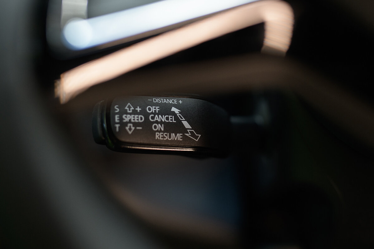 Управляется это всё также удобно. Круиз-контроль рычажком за рулём снизу, а парковщик физической клавишей на центральной панели.