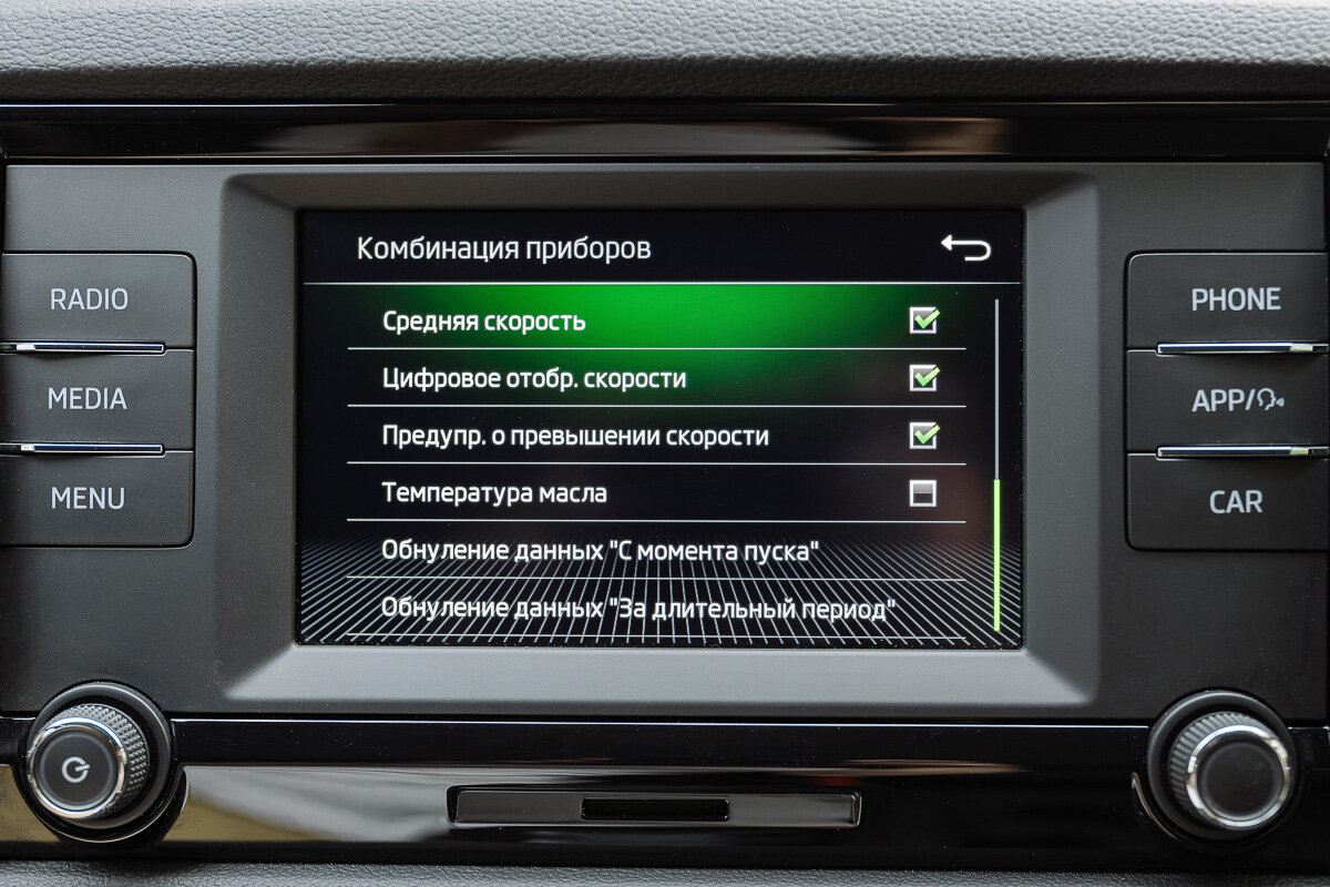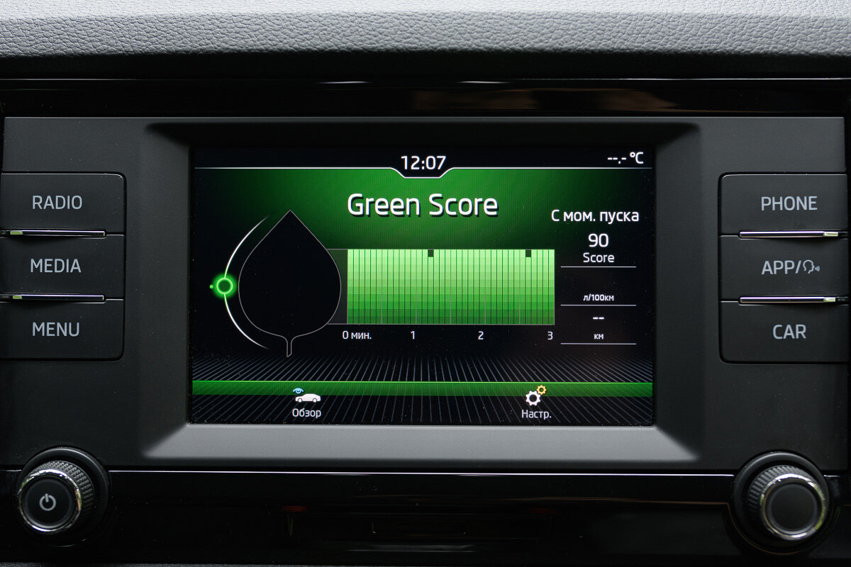 Ну а завершит осмотр салона бортовой компьютер. У меня не топовая комплектация, так что здесь небольшой экран, но с хорошо читаемыми шрифтами, понятной графикой и элементами управления. Ещё здорово, что тут много физических клавиш, чтобы там не пропагандировали автопроизводители, физические кнопки, особенно во время движения, очень удобны. К бортовой системе я ещё вернусь отдельно в рассказе о технологиях. Отмечу же, что в сочетании с аналоговыми приборами, между которыми дополнительный экран, тут самая разумная комбинация по денежным затратам на оснащение. Позже должна появиться комплектация с более крупным экраном и цифровой панелью приборов.