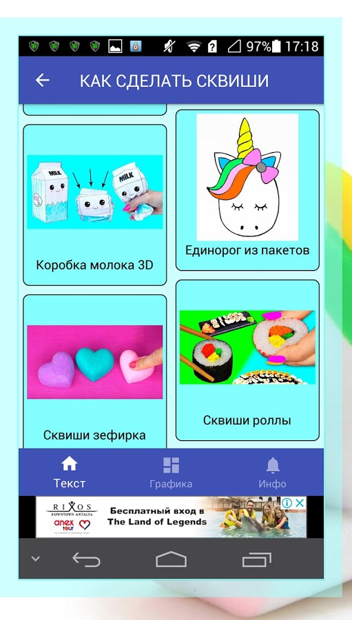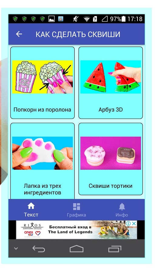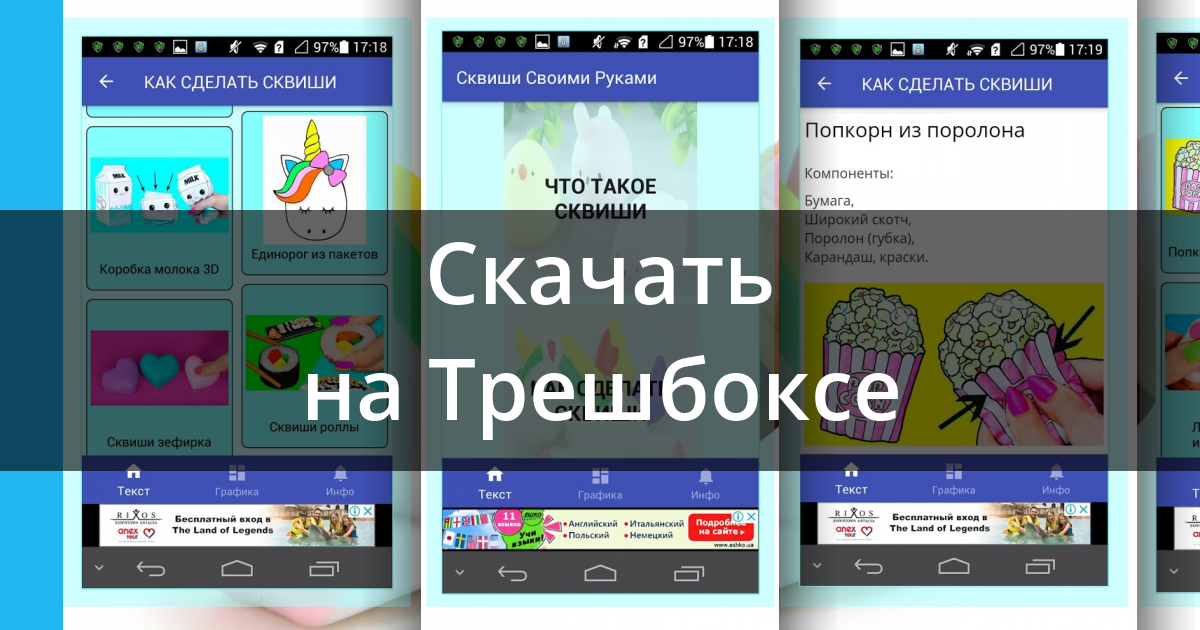 Количество рецептов для изготовления сквишей постоянно пополняется. Приложение абсолютно бесплатное для скачивания и просмотра внутреннего материала.