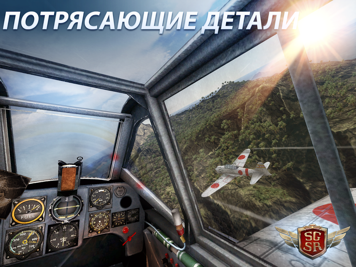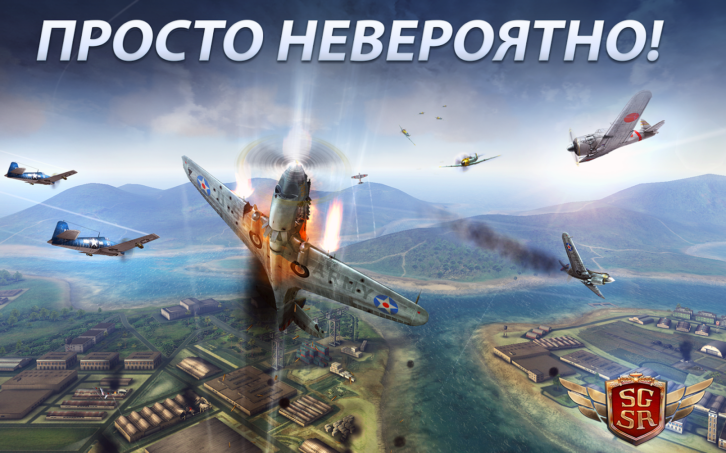 ПОТРЯСАЮЩАЯ ИГРА — ВОЗДУШНЫЕ СРАЖЕНИЯ ВРЕМЕН ВТОРОЙ МИРОВОЙ ВОЙНЫ! Вам предстоит принять участие в беспощадных ближних боях, защищать города и эскадрильи, бомбить вражские укрепления и даже летать через туннели. Действия разворачиваются в местах реальных событий: Перл-Харбор, пролив Па-де-Кале, острова Мидуэй, территории Германии и Франции.