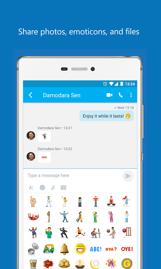 - Делитесь файлами и смайликами.