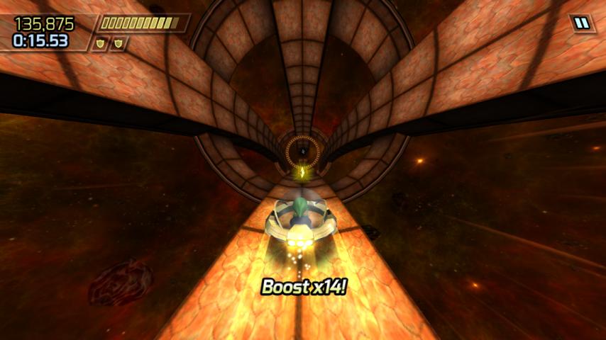 Вы — пилот небольшого космического корабля, ваша задача — как можно быстрее преодолеть самые сложные треки во вселенной, на вашем пути повстречаются трамплины и различные препятствия, избегайте их и сохраняйте высокую скорость. В процессе заездов не забывайте про сбор бонусов, они помогут вам открывать интересные вспомогательные устройства и секретные уровни. Доступно более 40 уровней на 5 различных планетах, списки лидеров на интернет-статистике, возможность обновлять свой корабль за баллы, геймплей выдающий до 60 кадров в секунду! Идет на Tegra 3.