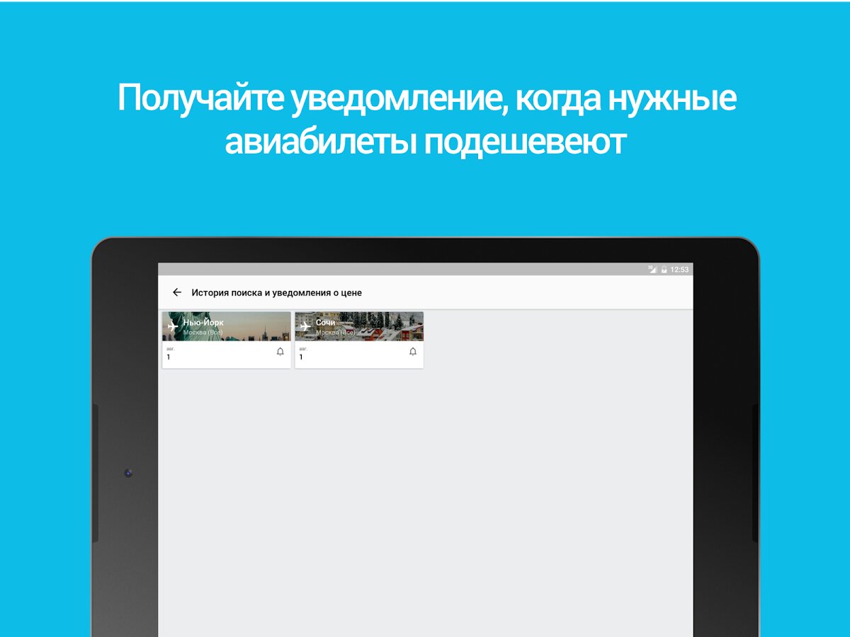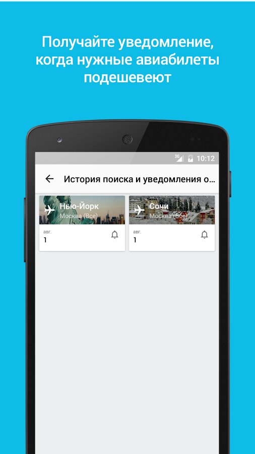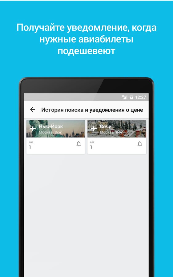 - Оповещения о снижении цен на билеты и отели