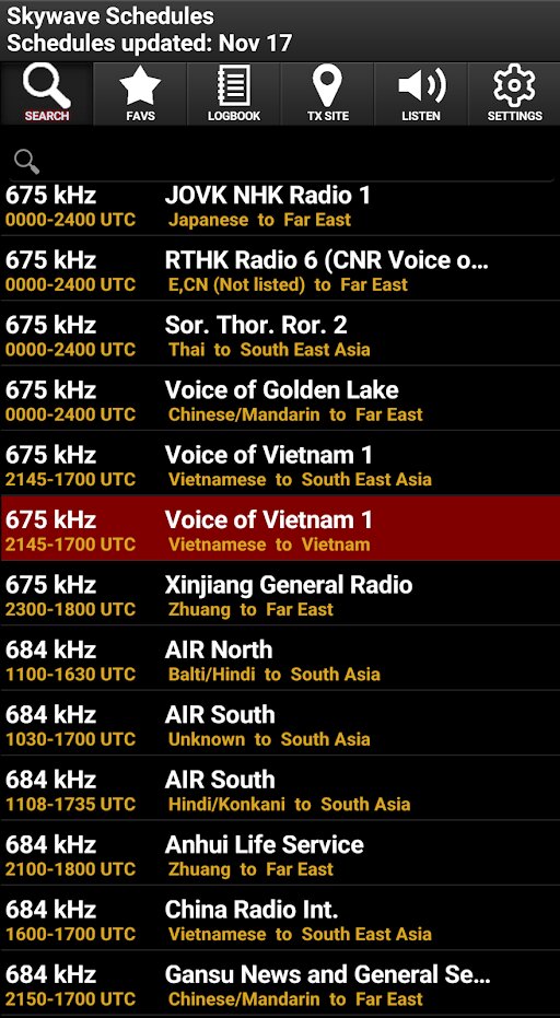 Расписание Skywave изначально было разработано для использования с портативными коротковолновыми радиостанциями, что позволяет вам легко находить коротковолновые радиостанции или станции коммунального обслуживания, перечисляя их частоту и время трансляции. Короче говоря, он позволяет вам узнать, что вы слушаете или когда слушать определенную станцию или станции, вещающие на вашем языке. Вы также можете прослушивать удаленные приемники, чтобы узнать, действительно ли станция, которую вы пытаетесь принять, находится в эфире. Радиостанции можно искать с помощью Broadcast, Utility, обоих типов или DRM (станции Digital Radio Mondiale).