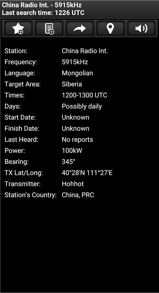 Сезоны коротковолнового вещания меняются в конце марта (на сезон «A») и в октябре (на сезон «B»), что может привести к отображению неточных списков, пока вещатели не опубликуют свои расписания трансляций или пока слушатели не обнаружат, какие частоты изменились. Используйте опцию «Обновить расписания» в «Настройках» приложения, чтобы убедиться, что у вас есть самые свежие расписания. Автор приложения не несет ответственности за точность расписания, учтите это, просматривая приложение.