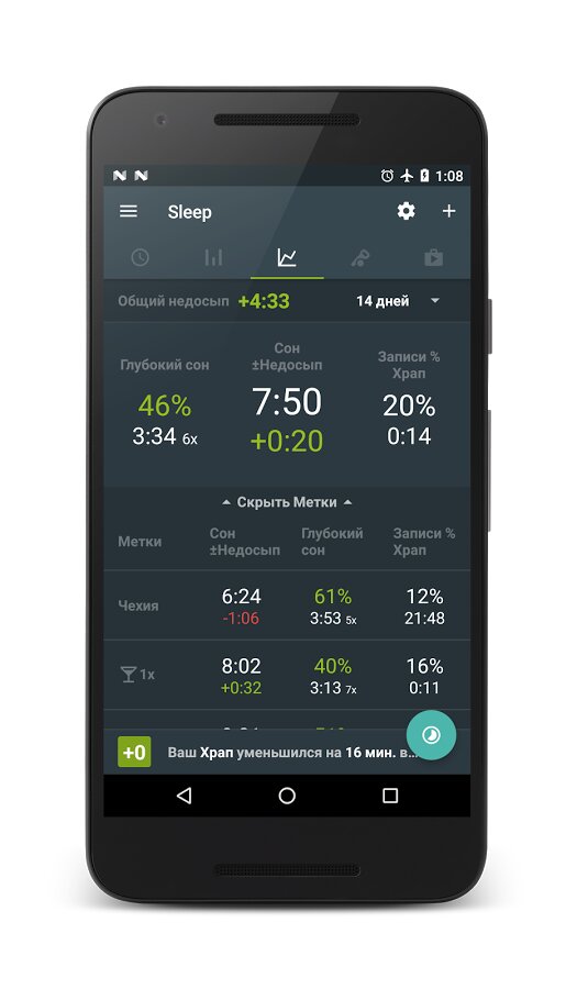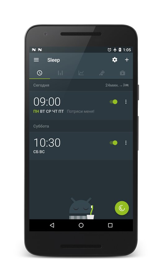 Sleep as Android — умный будильник управляет не только пробуждением, но и процессом засыпания, контролирует сон в течение всей ночи.
