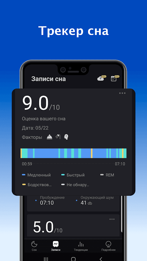 - Разблокируйте всю музыку для сна, заметки о сне, тенденции сна