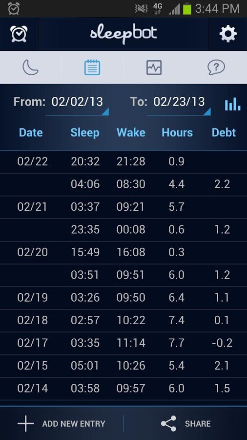 Пожалуй, сейчас невозможно найти человека, который не страдал бы от недосыпания. Ещё одна проблема заключается в том, что нам довольно трудно отследить количество часов, которые мы провели во сне, и подсчитать часы, которые мы «не доспали». К счастью, для владельцев Android существует приложение SleepBot, с помощью которого вы можете легко отследить ваше время сна, и, в зависимости от полученных на протяжении некоторого времени результатов, скорректировать свой режим.