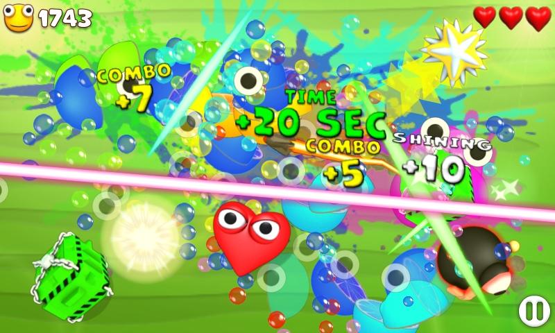 Игровой процесс предельно прост: водя пальцем по экрану, необходимо рубить разноцветные мячики, которые бесятся на уровне. Работать предстоит быстро, ведь проказники то и дело пытаются улизнуть за пределы экрана. Но сильно увлекаться свайпами не стоит, поскольку нередко на уровнях появляются противные бомбочки. Если нечаянно попасть по такому предмету, он отнимет одну жизнь или драгоценные секунды.