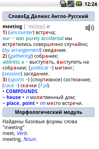 СловоЕд Делюкс Русско-Англо-Русский — одни из первых офлайн словарей появившихся для Android, созданные лидирующим производителем ПО для мобильных устройств. Словари содержат первоклассный словарный контент, подробные переводы и примеры употребления, занимают минимум места в смартфоне, работают оффлайн, невероятно удобны в использовании и функциональны.