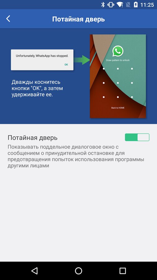 Не пойму, почему её так хвалят. Ведь чтобы войти в защищённое ею приложение, нужно удалить саму программу и путь открыт. Ведь она, в отличие от hi applock pro, не устанавливается в качестве системного админа, а значит удаляется на раз.