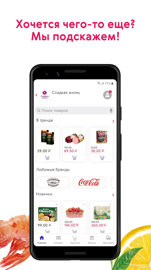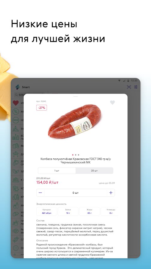 - Любимые товары. Сохраняйте любимые товары в избранное и добавляйте в корзину. Любой заказ вы можете повторить в пару кликов. Проводите время с родными и близкими, а доставку продуктов доверьте Смарт.