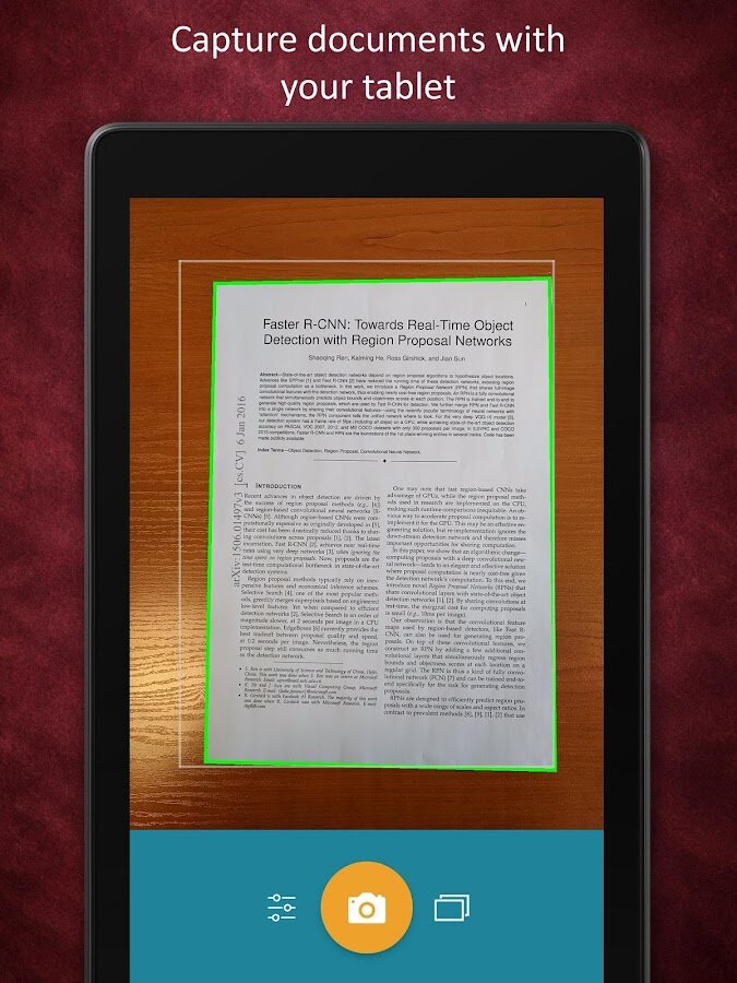 - Умное распознавание границ документов в режиме реального времени;