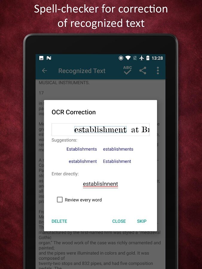 - Проверка орфографии и редактирование результатов ОРС;