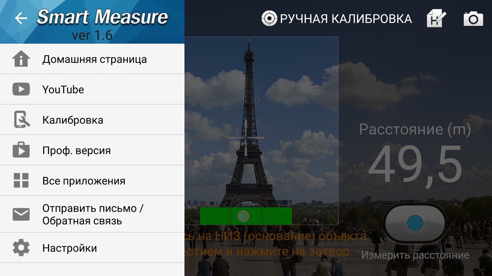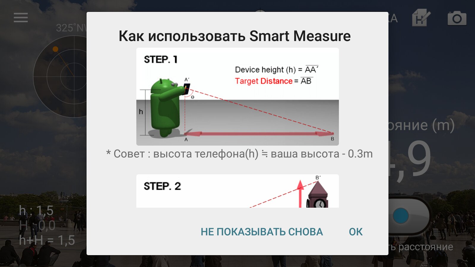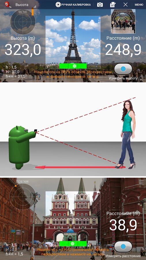 Smart Measure – этот дальномер измеряет расстояние и высоту объекта, используя законы тригонометрии.