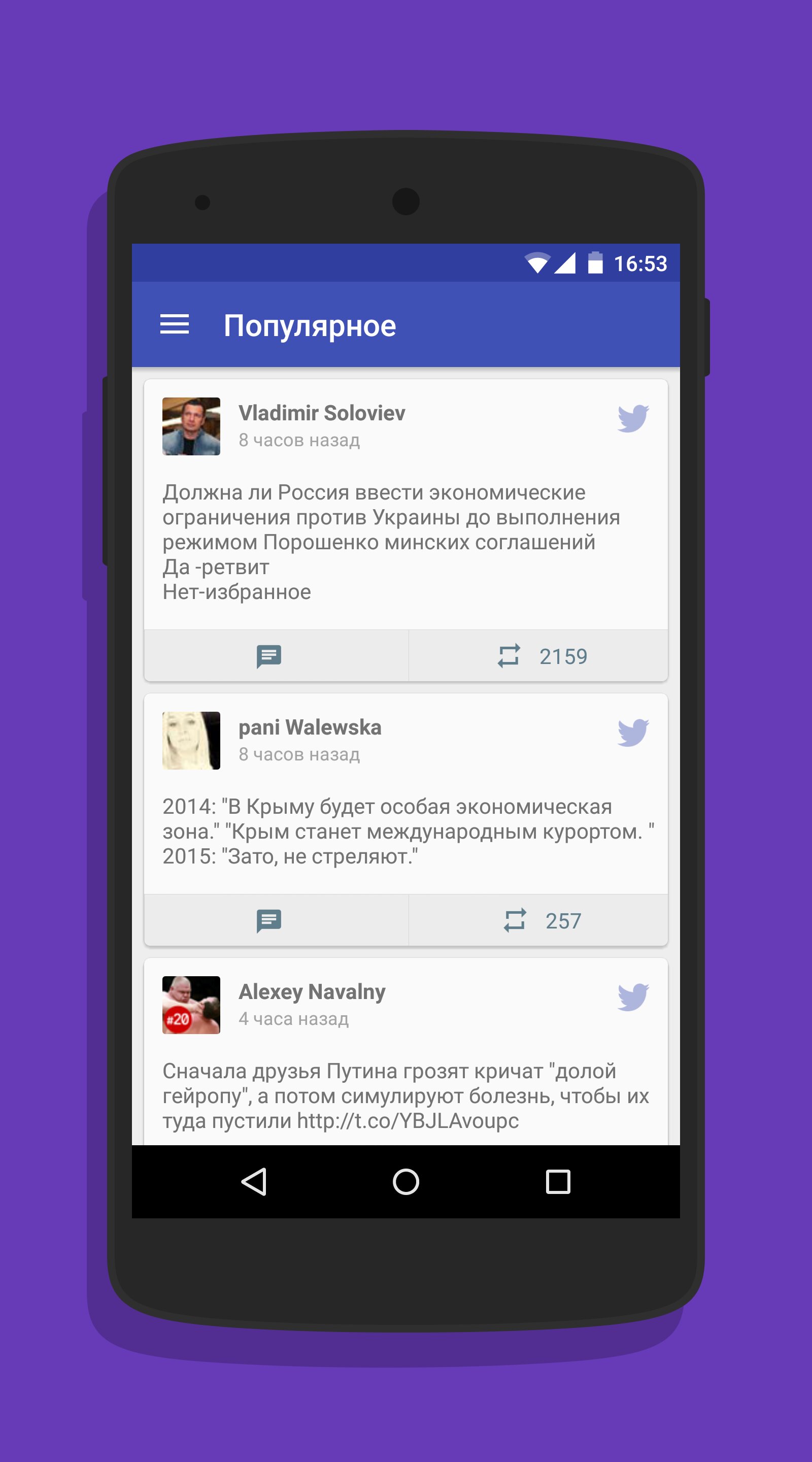 В отдельной ленте «Популярное» наш робот собирает самые популярные твиты, а в ленте «Избранное» пользователи смогут найти публикации из всех соцсетей, которые им понравились.