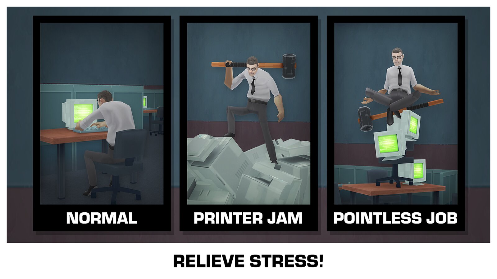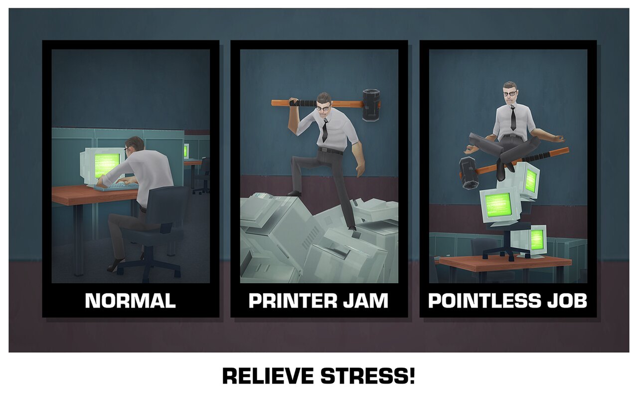 Вам надоели офисы? Нервы сдают? Тогда эта игра для вас! Суть этой игры заключается в том, что вы будете разрушать офисы. Компьютерные столы, сами компьютеры, все, что попадется под руку. В игре хороша графика и удобный геймплей.