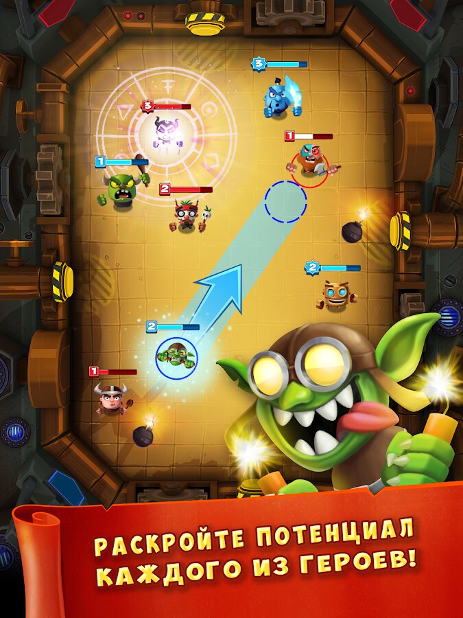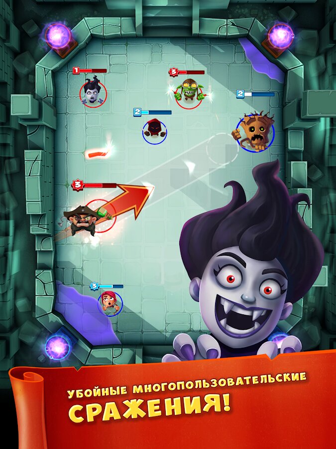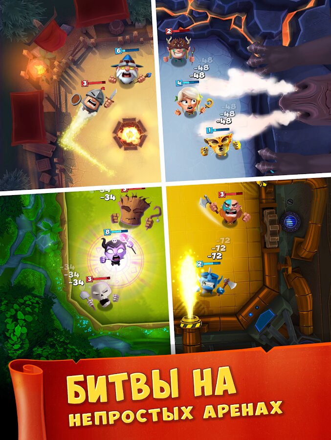 Выходите на арену и побеждайте своих врагов в битве 1 на 1. После каждой одержанной победы получайте очки, открывайте карты и дополнительные способности чтобы сделать вашего героя еще быстрее, сильнее и мощнее, стань королем арены.