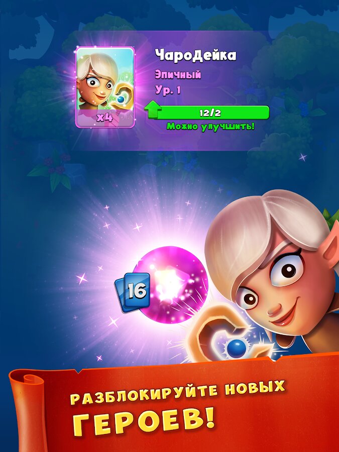 - Собирайте карты в правильные комбинации чтобы улучшить и усилить вашего героя.
