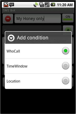 На основании этих четырех типов событий и трех утверждений вы сможете создавать гибкие правила. Например, когда вы находитесь на совещании и вам звонит жена, то ей автоматически можно отправлять сообщение с просьбой перезвонить.