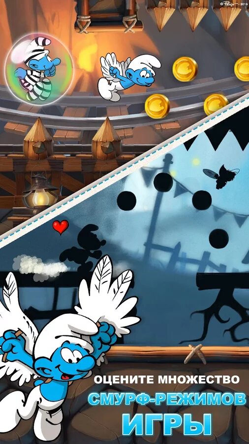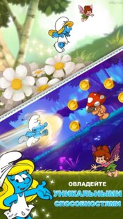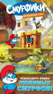 - ОСВОБОДИТЕ всех смурфов и используйте их уникальные способности (рывок, двойной прыжок, топот, магнит…), чтобы вихрем промчаться по уровням и установить рекорд.